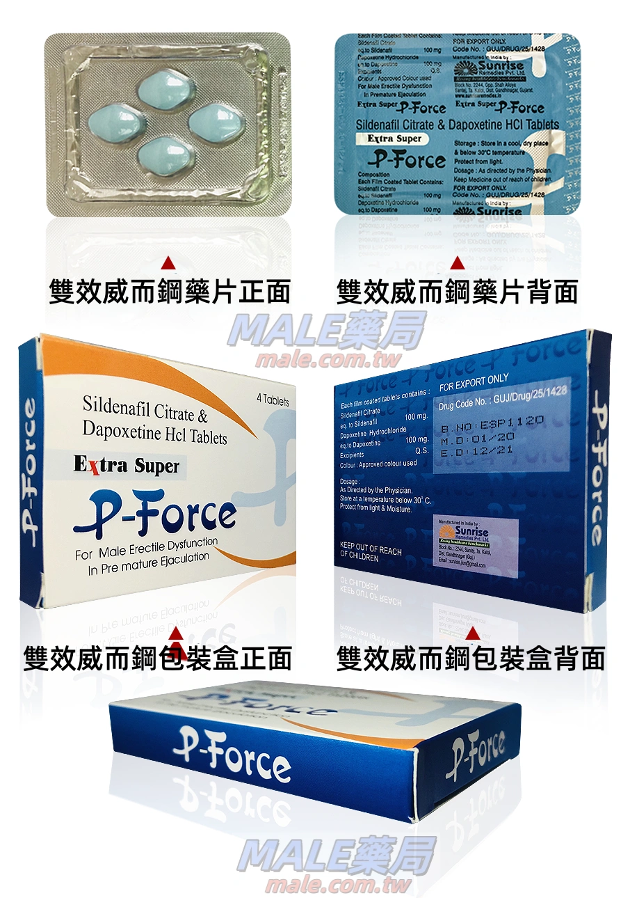 雙效威而鋼(Extra Super P-Force ),也被稱為 藍P 或 必利吉,因其含量高號稱世界最強的超級雙效威而鋼, 是重度性功能障礙用戶的福音,也是追求極致性愛用戶的珍寶。 100mg的西地那非能提供超強的硬度,100mg的達泊西汀讓人持久不洩。 擁有Extra P-Force相當於擁有酣暢淋漓的性愛和強悍的征服力。西地那非(Sildenafil 100mg) 和 達泊西汀(Dapoxetine 100mg) 完美結合,旨在提升男性性功能表現,無論是提升勃起硬度、延長性交時間,還是提升性生活質量。許多使用者反映,服用後能體驗到無與倫比的征服力和滿足感,重拾自信與活力。