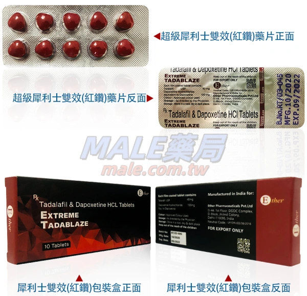 超級雙效犀利士紅鑽 (Extreme Tadarad 140mg),是一款結合了兩種強效藥物的複合型產品,專為男性提供解決早洩和勃起功能障礙的雙重效果。這款藥物具有 達泊西汀 和 他達拉非 的雙重作用機制,旨在幫助男性延長性行為時間、提高性能力,並有效治療早洩和勃起功能障礙。其強效配方為您帶來的,是持久與穩定的性愛體驗。