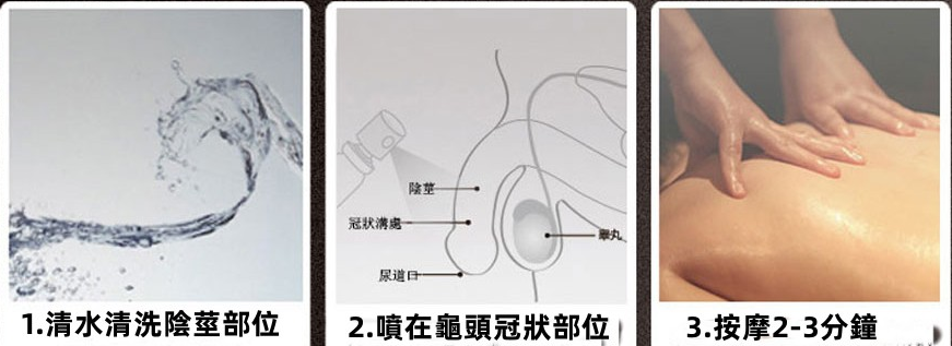 - 噴灑於龜頭及冠狀溝部位,麻醉劑會暫時抑制局部神經敏感度,延緩射精反射。